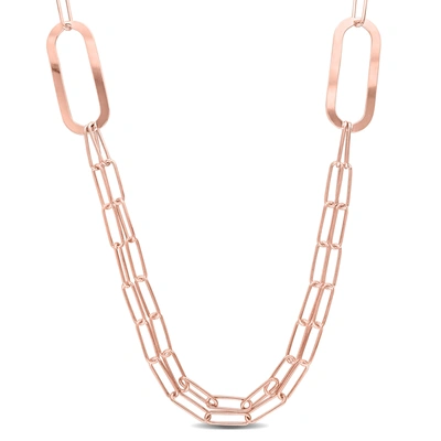 Paperclip Chain Necklace In Rose Plated Sterling Silver - 37 In In Pink