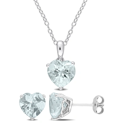 4 1/2ct Tgw Heart-shape Aquamarine 2-piece Set Of Pendant With Chain And Earrings In Sterling Silver