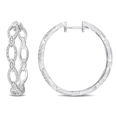 1/4ct Tdw Diamond Oval Design Hoop Earrings In Sterling Silver In White