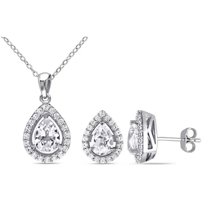 4 7/8ct Tgw Created White Sapphire Necklace And Earrings Set Sterling Silver