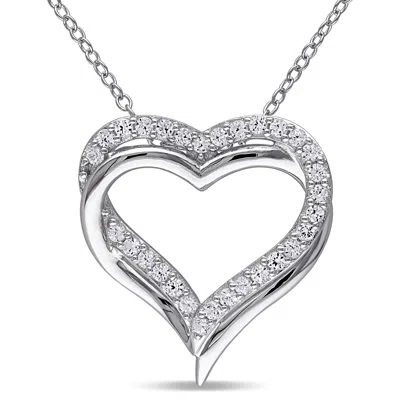 Created White Sapphire Crossover Heart Necklace In Sterling Silver