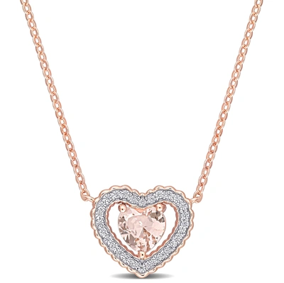 1/10ct Tgw Cubic Zirconia And Simulated Morganite Heart Necklace In Rose Plated Sterling Silver