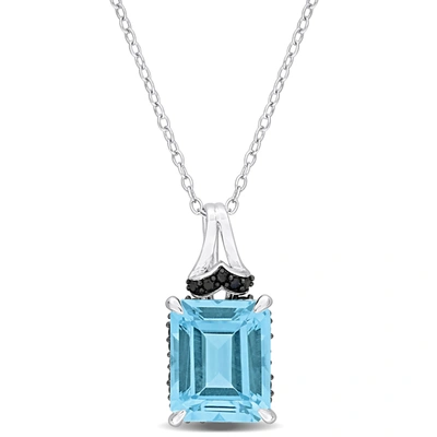 7 3/4ct Tgw Sky Blue Topaz And Black Sapphire Pendant With Chain In Sterling Silver