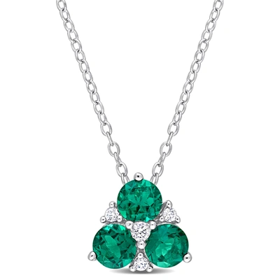 1 1/4 Ct Tgw Created Emerald And Created White Sapphire 3-stone Pendant With Chain In Sterling Silve In Green