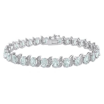 11 1/5ct Tgw Oval Aquamarine And Diamond Accent S Link Tennis Bracelet In Sterling Silver