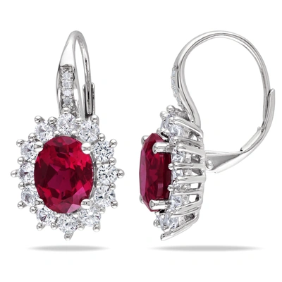 8ct Tgw Created Ruby And White Sapphire Leverback Earrings In Sterling Silver In Red