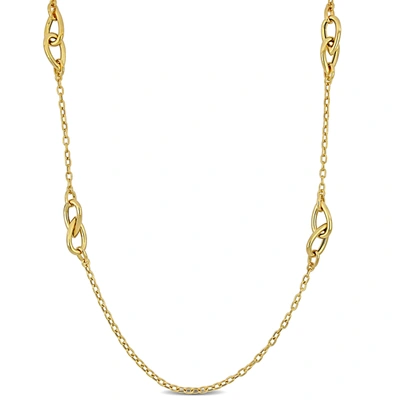 Double Pear Shape Link Station Necklace In Yellow Silver- 23+2 In. In Gold