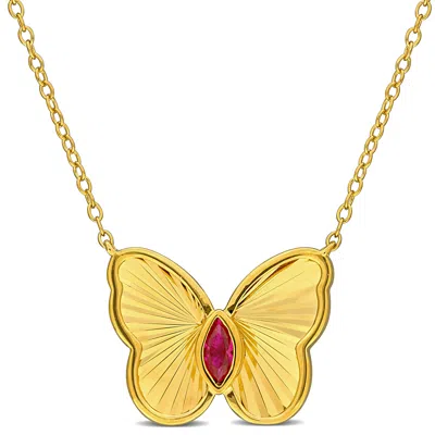 1/5ct Tgw Marquise-cut Created Ruby Butterfly Necklace Yellow Silver-17in In Red