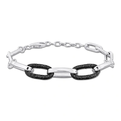 Oval Link Bracelet W/ Black Sparkle Enamel In Sterling Silver - 8+1 In.