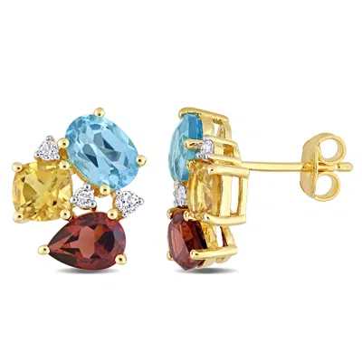 4 7/8 Ct Tgw Multi-color Gemstone Stud Earrings In Yellow Plated Sterling Silver