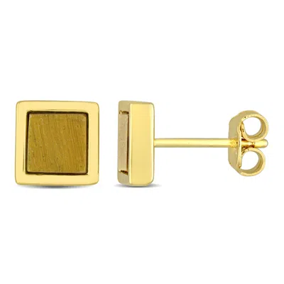 1ct Tgw Tiger Eye Square Stud Earrings In Yellow Silver In Gold