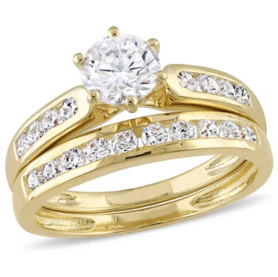 2 3/5ct Tgw Cubic Zirconia Channel Set Bridal Ring Set In Yellow Plated Sterling Silver In White