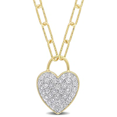 1 1/8 Ct Tgw Created White Sapphire Heart Pave Pendant With Chain In Yellow Plated Sterling Silver