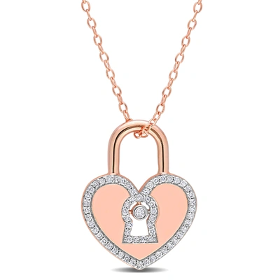1/5 Ct Tw Diamond Heart Lock Pendant With Chain In Rose Plated Sterling Silver In White