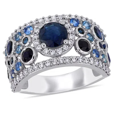 2 5/8ct Tgw Sapphire And 1/2ct Tw Diamond Halo Cluster Ring In 14k White Gold In Blue