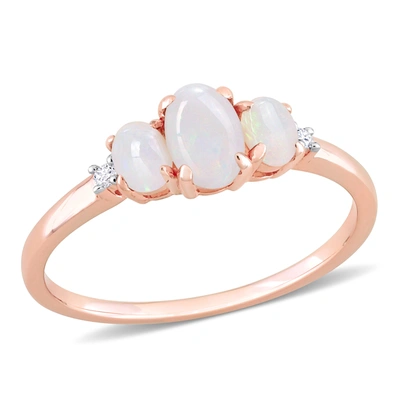2/5 Ct Tgw Opal And Diamond Accent 3-stone Ring In 10k Rose Gold In Pink