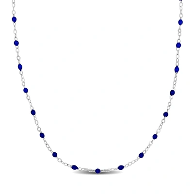 Blue Enamel Bead Station Forzatina Brill Necklace In Sterling Silver - 18+1 In.
