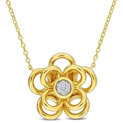 Diamond Accent Flower Necklace In Yellow Plated Sterling Silver-18in In Gold