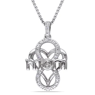 Diamond Infinity Heart "mom" Necklace In Sterling Silver