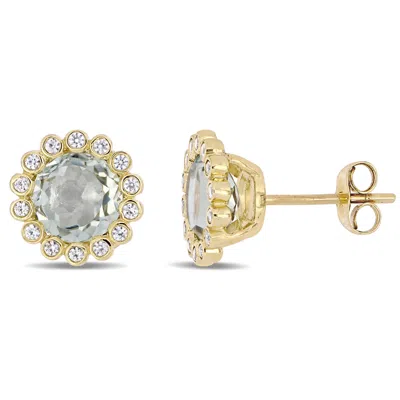 2 7/8ct Tgw Green Quartz White Sapphire Halo Stud Earrings 10k Yellow Gold