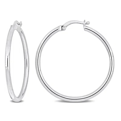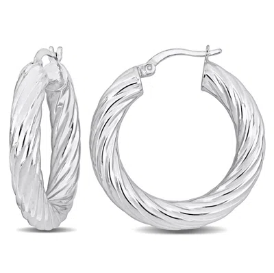 30x5mm Round Twist Hoop Earrings In Sterling Silver In White
