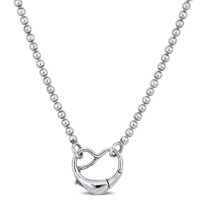 Bead Necklace With Heart Clasp In Sterling Silver - 18 In In White