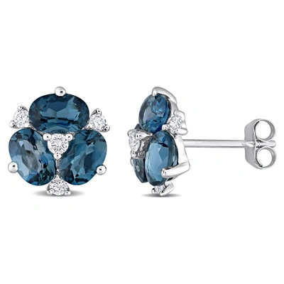3ct Tgw London Blue Topaz And 1/4ct Tdw Diamond Floral Earrings In 14k White Gold