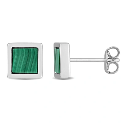 1ct Tgw Malachite Square Stud Earrings In Sterling Silver In Green