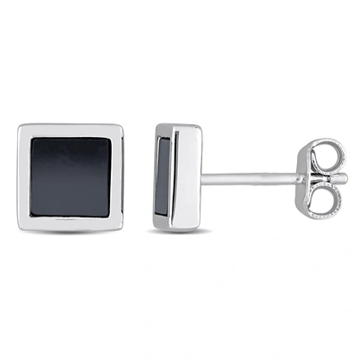 Black Diamond Accent Square Men's Stud Earrings In Sterling Silver