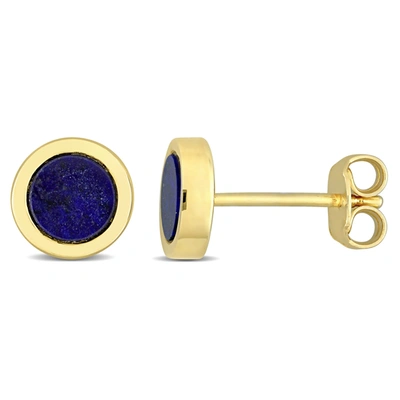 5/8ct Tgw Lapis Stud Earrings In Yellow Plated Sterling Silver In Blue