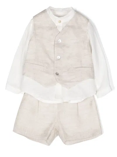 Babies' Shirt Waistcoat Linen Trouser Set In Neutrals