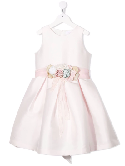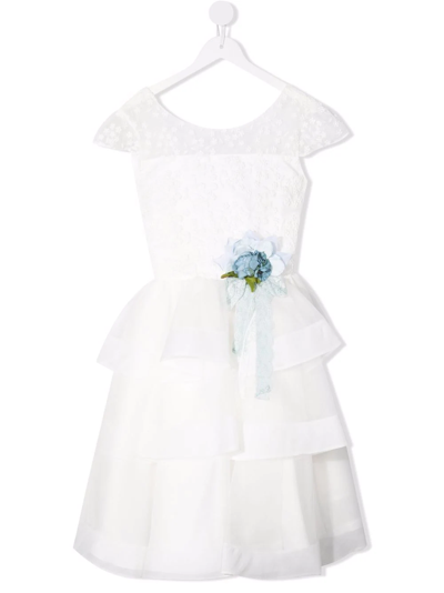 Kids' Floral Appliqué Lace-detailed Dress In White