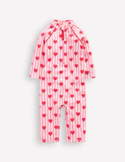 Printed Sun Safe Surfsuit Bubblegum Pink Heart Stripe Baby Boden