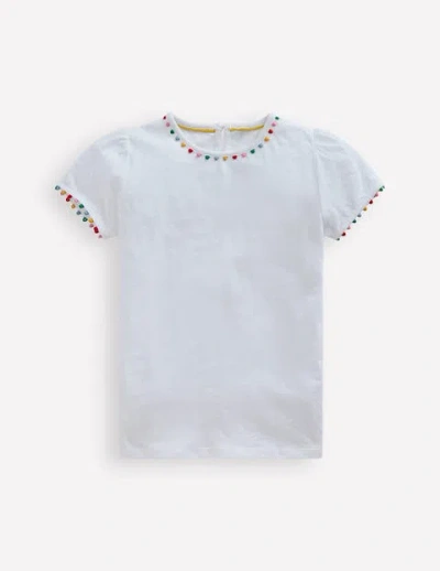 Kids' Ali Puff Sleeve Pom T-shirt White Girls Boden