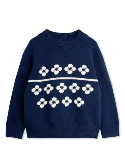 Kids' Floral Knitted Jumper In Blue