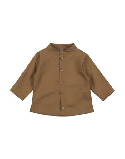 Babies' Newborn Boy Shirt Camel Size 3 Cotton In Beige