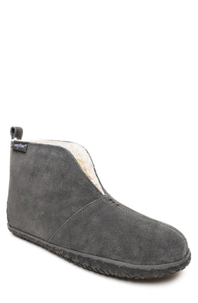 Genuine Shearling Moccasin Slipper In Grey Suede
