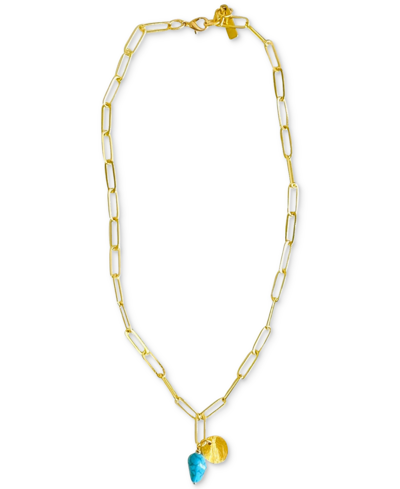 Gold-tone Turquoise & Amazonite 16" Pendant Necklace In Gold Turquoise