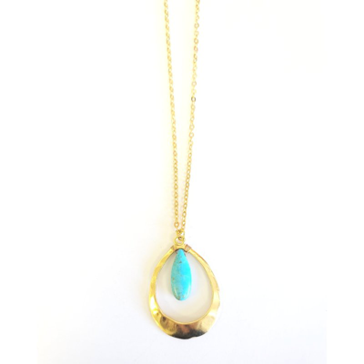 Women's Ain Necklace With Turquoise And Amazonite Stones In Gold-tone