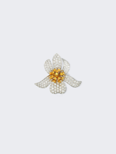 Orange Sapphire Flower Single Earring In 18k Rose Gold And White Gold