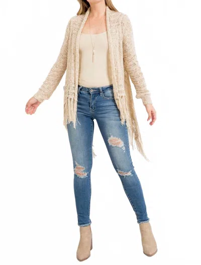 Crocheted Long Sleeve Cardigan In Beige In Neutral