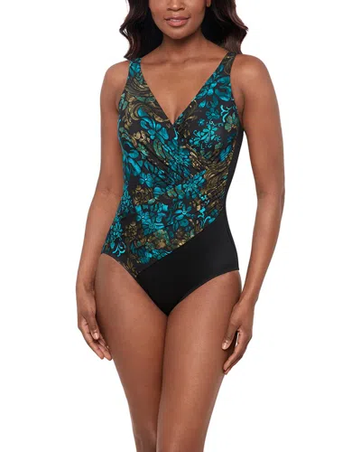 Amarna Criss Cross Escape One Piece Swimsuit In Black/multi In Blue