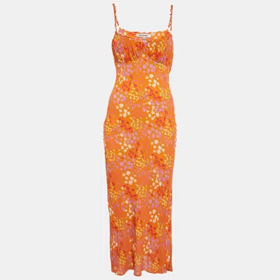 Pre-owned Orange Floral Print Crepe Florae Midi Dress S