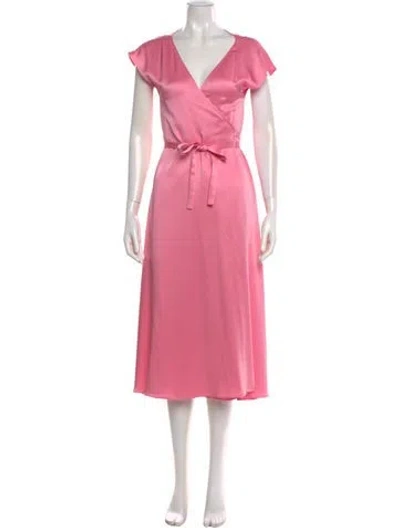 Pre-owned V-neck Midi Length Dress In Pink