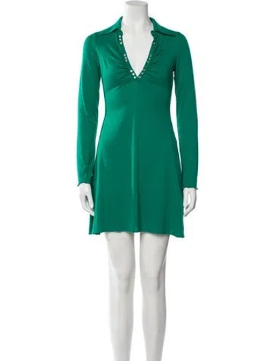 Pre-owned V-neck Mini Dress In Green