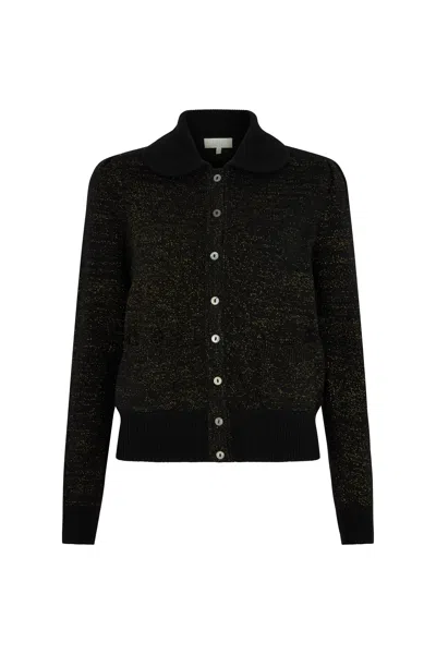 Women's Gold / Black Cashmere Mix Lurex Cardigan With Collar Black / Gold In Gold/black
