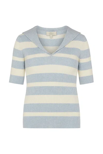 Women's Cashmere Mix Cardigan With Collar Navy / Light Blue