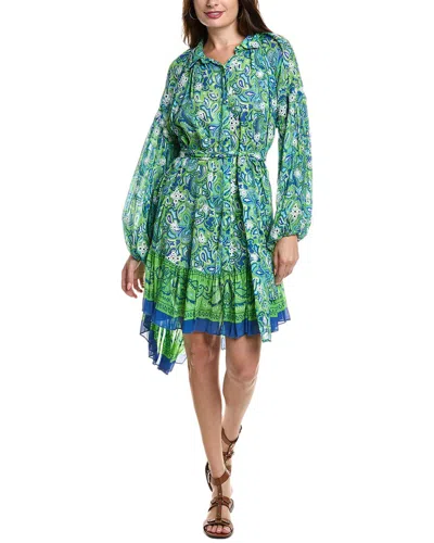 Helena Dress In Pink/green | Flared Long Sleeves, Adaptable Collar, Delicate Floral Print | Womens S