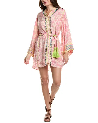 Azra Short Dress In Pink | Off Shoulder, 3/4 Length Sleeves & Fringe | Lightweight Mini Dress Wi