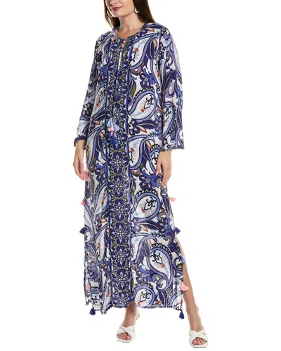 Caftan Madalena In Blue | Short Beach Dress | Vibrant Paisley Print Embroidered With Sequins | Women